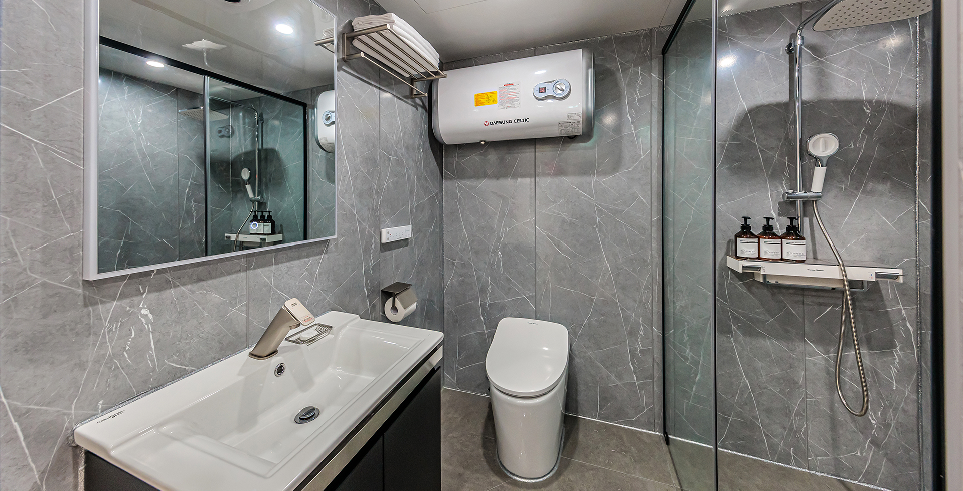 스타일러,소파베드,TV,에어컨,취사도구,정수기,침대,전기밥솥,핫플레이트,식탁,냉장고,전자레인지,샴푸,린스,바디,비누,칫솔세트,가운,수건,인터넷,일산화탄소 경보기,소화기,비데,난방,화재 경보기